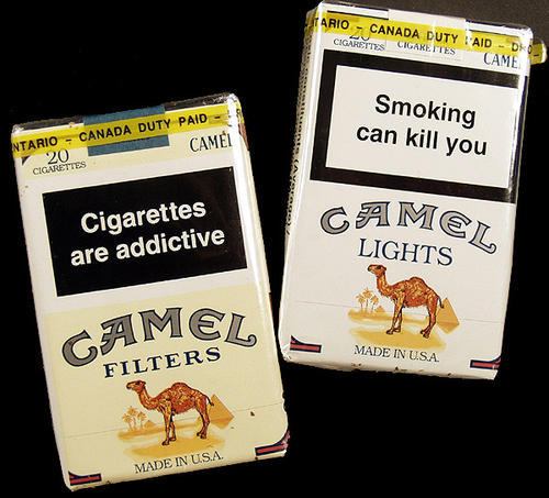 Warning Labels: The new Canadian warning labels are contrasted with current packs made in the same factories in Norht Carolina. 1994