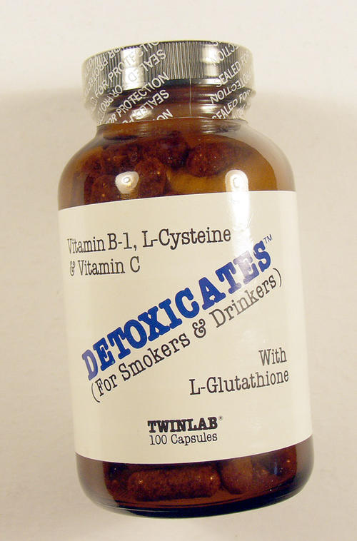 Detoxicates (for smokers and drinkers). $16.75 by Twinlab. Vitamins Bt, C, and other minerals.