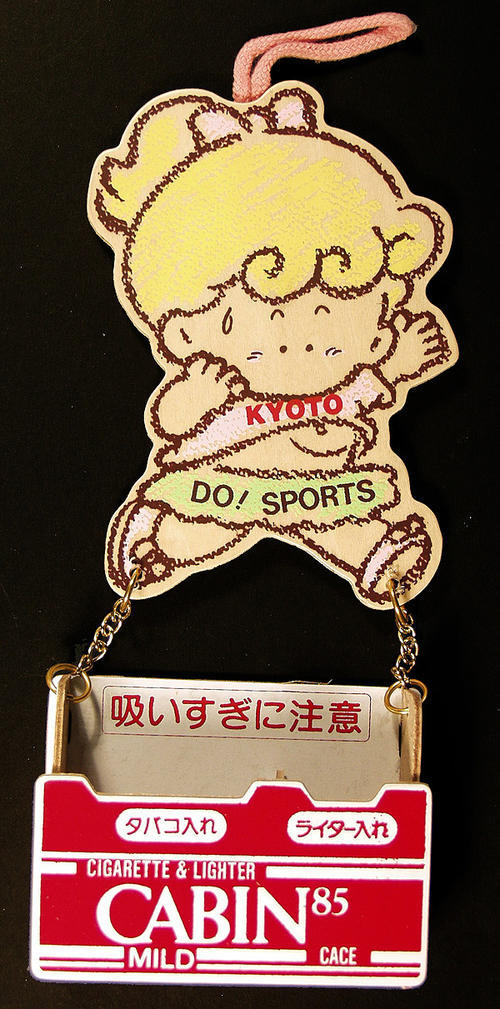 Mobile- a little girl attached to cigarette pack and lighter. Some print not in English. From Japan.
