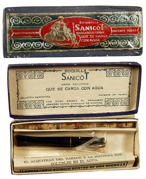 The boquilla Sanicot cigarette holder- filter in the exhibit comes from Argentina 1951