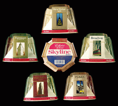 5-packs, skyline series. Made in USA. City themes cigarette packs. 100 cigarettes.
