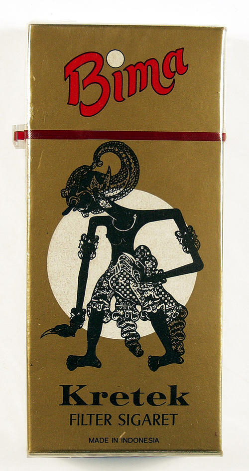 Golden colored box of cloves from Indonesia- illustration of Bima, Indonesian style. 10 pack, fliptop box.