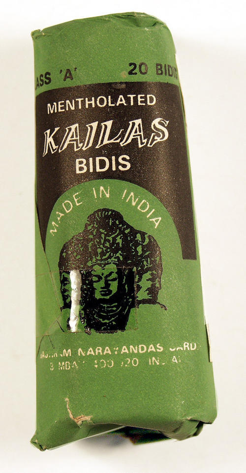 Green cone of menthol Bidis. From India. Image of mythological character.