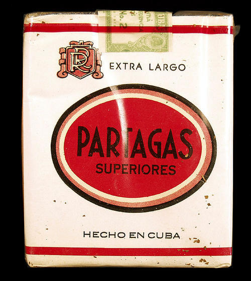 Cigarettes pack. White pack w/ red design. Made in Cuba.