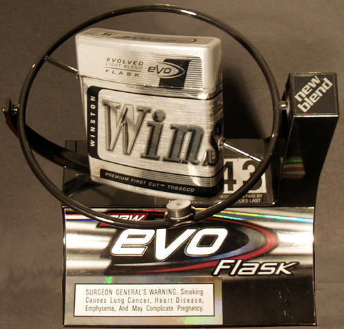 R.J. Reynolds Tobacco Co. recently introduced the Winston Evo Flask pack, marking the first significant redesign of the cigarette box in three decades. The Flask pack, made of recyclable plastic, is water-resistant,crush-proof and designed to fit inside pant or shirt pockets. The Evo Flask is being sold in two new tobacco blends - a light blend and a rich blend. The light blend pack builds on Winston's new signature silver look and the rich blend has black packaging. Each plastic pack is sealed with aluminum foil, and each "Evo" cigarette has a gray filter wrap and gray-striped design on the cigarette paper. The new Evo Flask innovation has been supported in the marketplace with extensive P.O.S(point-of-sale) displays and cutting edge CD-ROM marketing. If the new packaging is received well by smokers it can be expected that RJR tobacco will extend usage of the new pack beyond the Winston brand.
