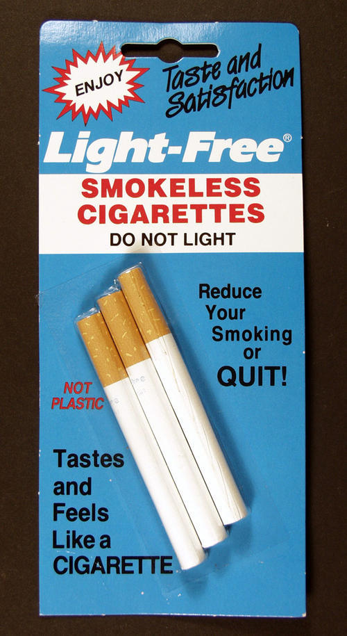 Smokelss cigarettes- not plastic, "to satisfy the feeling of a cigarette in your hand."