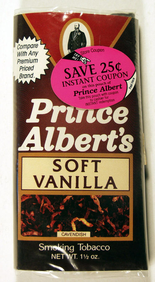 Soft vanilla smoking tobacco. Save 25 cent coupon attached. Cavendish cut. 1.5 oz.