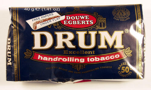 Drum handrolling tobacco. 40g in blue pouch. In original wrapping. 50 rolling papers included. Made in Holland.
