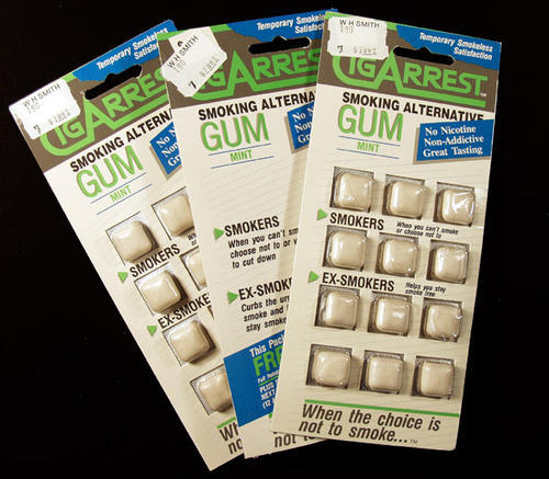 Cig Arrest Gum- Free with rebate and $2.00 off next purchase of 12/24 pack. Gum for cessation containing Lobeline; mint flavored. $2.99.
