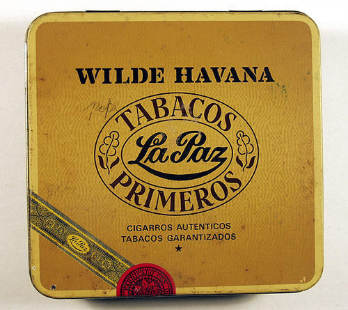 20 cigars in a tine. Cigars missing, tin has printing in Spanish.