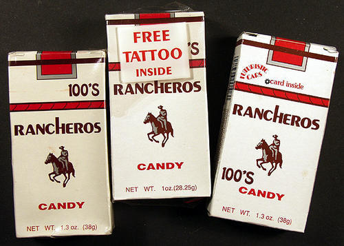 Candy pack- Ranchero's. 100's candy. Free- 59 cents. Prizes. Packaging made to look like a cigarette pack.