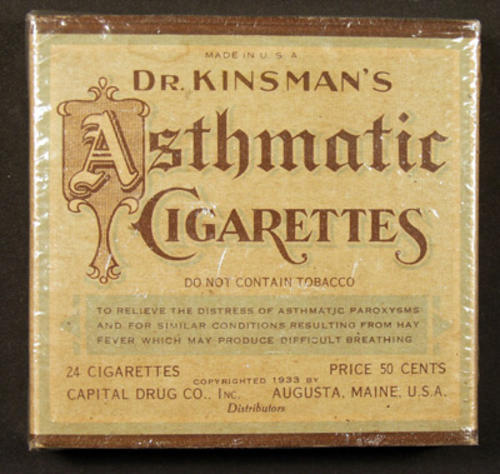 Asthmatic cigarettes- 24 pack- 50 cents. Slidebox. Non-tobacco. Historic.