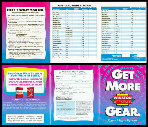 Winston order form with names and necessary proofs indicated for each item. Photo images not included. Surgeon generals warning included.
