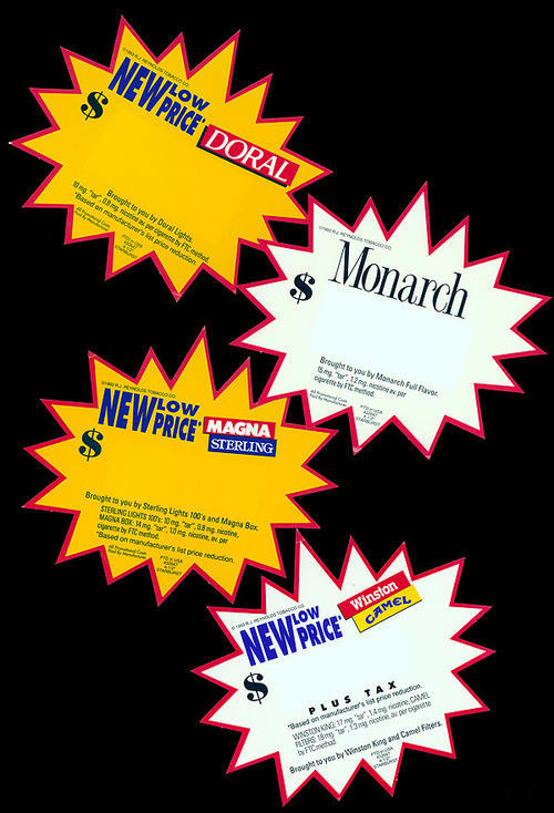 Starburst price tags to advertise new low price, mailed to North Brunswick Amoco from RJR. UPS date 7/30/93. Price change effective August 2, 1993.