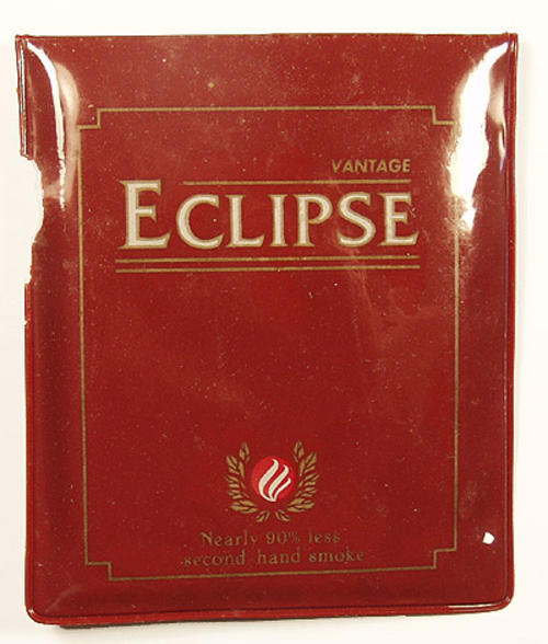 Red plastic pocket ash tray with logo.