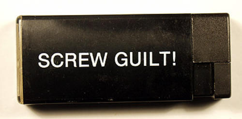 Black lighter that reads "Screw guilt" in white.