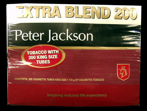 "Extra Blend 200" Maroon, black, and white box with gold box. 200 cigarette tubes King Size and 110 g. of cigarette tobacco.