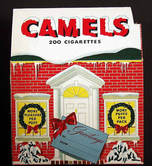 Christmas house carton for flat 50's, Circa 1940. Camel - Antique.
