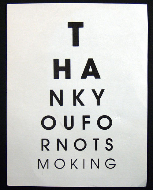 Note card with "Thank you for Not Smoking" written in eye chart style.