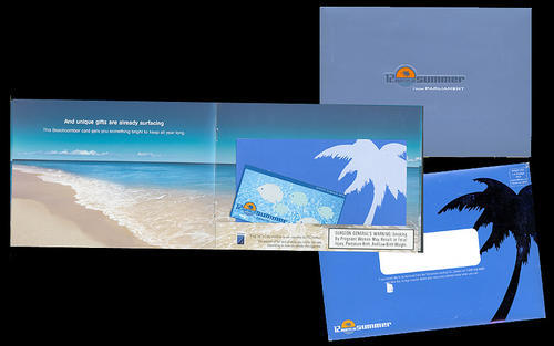 Direct mailing of a coupon booklet for Parliament cigarettes, with the theme "12 months of summer from Parliament." Beach scenes are dipicted in the booklet although the booklet was likely receive around December in time for the New Year. Comes with a scratch off card that reveals redeemable gifts. Gifts can be redeemed by sending in the card and a survey form.