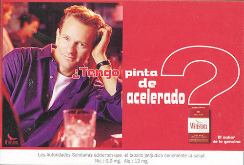 Postcard in Spanish "?Tengo pinta de acelerado? el sabor de logenuino." Image of Manat Bar.