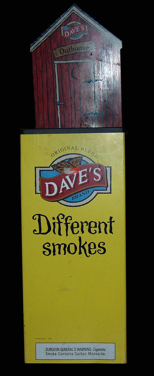 Large stand-up display of Dave's "Original Blend--Different Smokes" Features picture of Outhouse as background. Point of Sale.