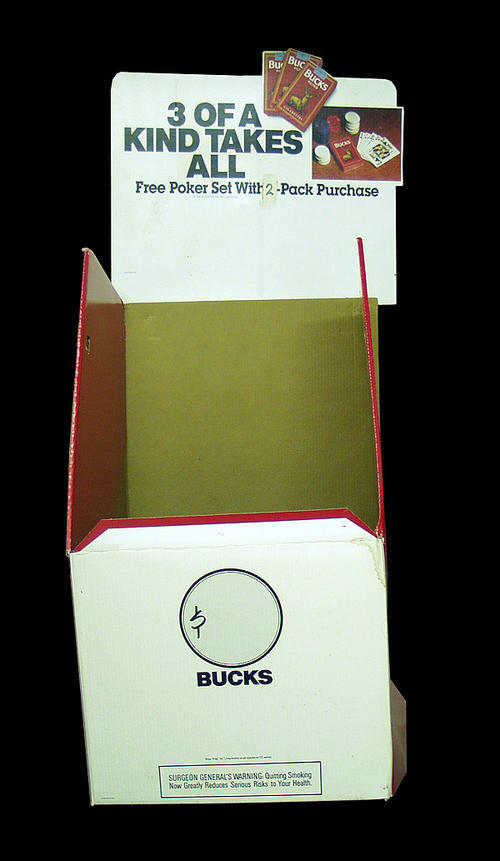 3 of a kind takes all--point of sale-- Bucks display offering a free poker set with 2 pack purchases. Originally with a 3 pack purchase-- but manually changed to 2.