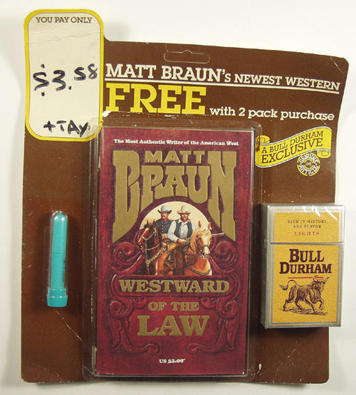 Bull Durham Lights pack. Comes with free book and menthol stick.