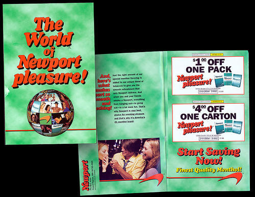 Direct mail from Newport. General promotion of the brand and products. Several pages of booklet describe "what makes Newport America's #1 Menthol." Includes two coupons: 1 $1off one pack and 1 $4.00 off one carton.