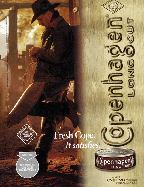 Ad for Copenhagen's Long Cut snuff tobacco.