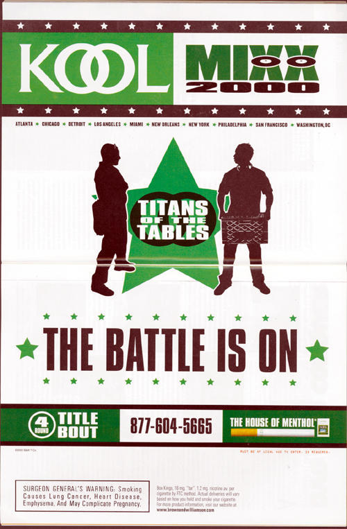 Ad from KOOL in promotion of its KOOL MIXX DJ music event. Found in Flair, Fall 2000; and Real Edge, October/November 2000. Both magazines are controlled circulation magazines of Brown and Williamson.