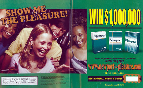 2 page Newport ad featuring a group of young adults laughing together, seemingly surprising one of their friends.