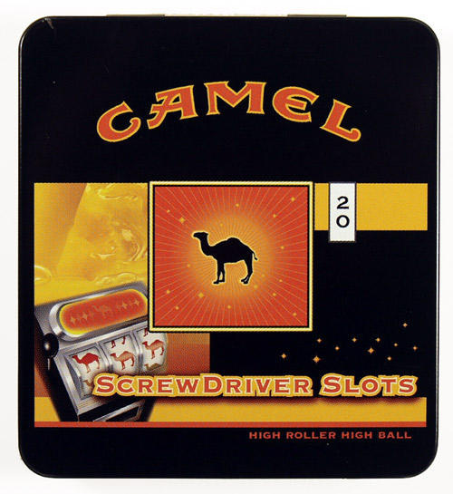 Camel "Screwdriver Slots" flavored Exotic Blends cigarettes. These cigarettes were introduced in the Fall of 2005 along with two other alcohol flavored cigarettes in the same "High Roller High Ball" series: SnakeEyes Scotch and Blackjack Gin. These special/limited time only blends fall in line with the "Camel Casino" campaign run during the same time period. The package describes the cigarettes as: "Citrusy and slightly twisted. Screwdriver Slots is Camel's jackpot blend."