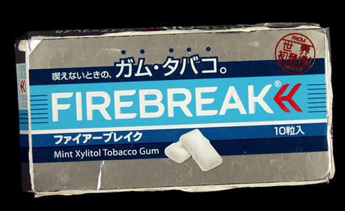 Firebreak mint flavored "tobacco gum", a smokeless tobacco product created by smokeless tobacco company, Swedish Match. Each piece of Firebreak contains about ca 1mg of nicotine. This product is marketed and sold in Japan, and, in 2006 began undergoing test marketing in Sweden.