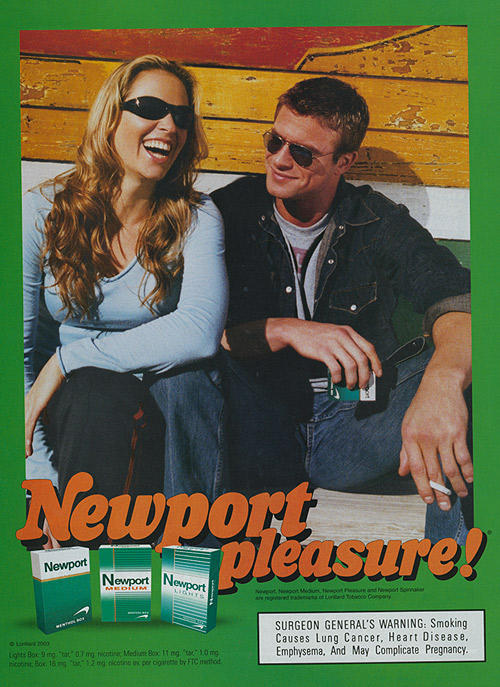 Ad for Newport cigarettes featuring an image of a couple laughing and smiling. The man can be seen smoking a cigarette.