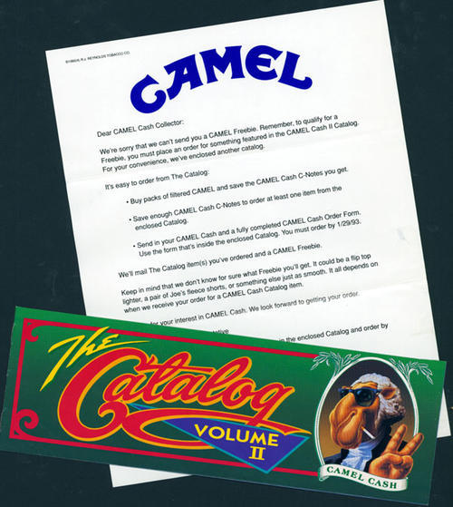 Letter from Camel explaining to the receiver that the receiver must first order an item from the Camel Cash catalog to receive a Camel "Freebie".