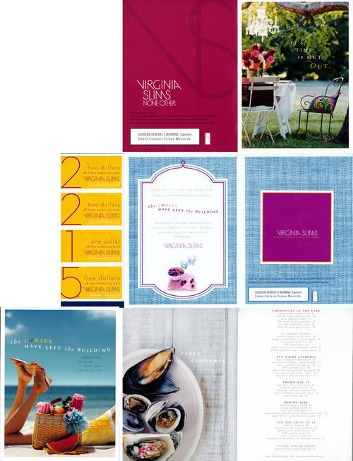 Summer themed direct mail from Viginia Slims including coupons and a gift of the third Virginia Slims cookbook. The cookbook covers "alfresco fare for the beach, the backyard and everything in between".