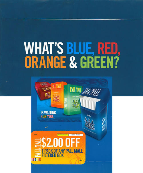 General promotional direct mail from Pall Mall including two coupons for $2.00 off any 1 pack of Pall Mall. Text: "A world of choices is waiting for you."