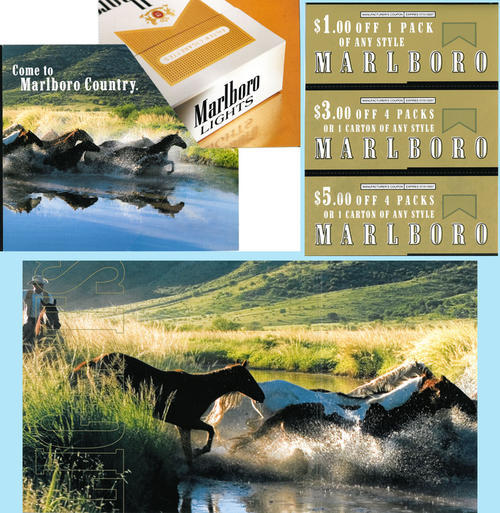 General promotional direct mail piece for Marlboro Lights, with three coupons included.
