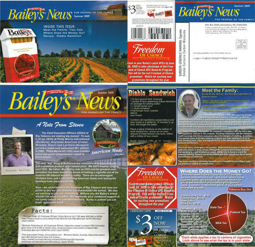 Summer 2009 direct mail newsletter in promotion of Bailey's cigarettes. Piece also comes with a coupon for $3.00 off 3 packs or 1 carton.