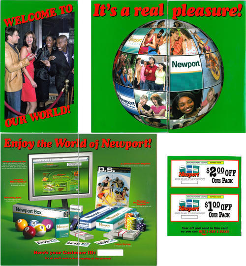 Direct mail from Newport welcoming the receiver to the mailing list and providing an overview of the benefits or being registered with Newport (e.g., access to the website, sweepstakes, Newport Pleasure Goods loyalty program, PS Magazine and coupons. The mailing comes with 2 coupons and a survey/response card to redeem an offer for a Buy 1 Get 1 free coupon.