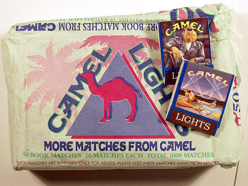 Camel Lights, Light Green, Purple, and Blue Wrap. Palm trees in background.