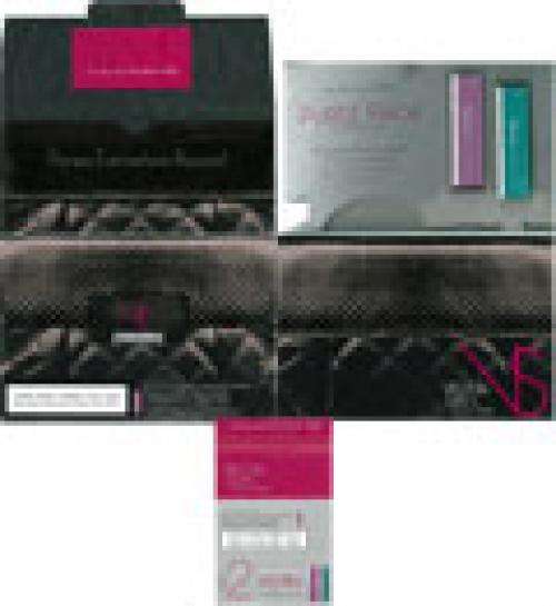 Direct mail from Virginia slims in promotion of its "purse pack" style, introduced by Philip Morris in late 2008/early 2009. Mailing is designed as a small purse and includes real size models of the purse packs inside to demonstrate their size and shape. Text: "Say hello to the new purse pack from Virginia Slims. Packed with 20 Superslims Lights, it's the latest little big thing."