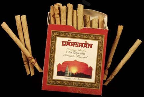Darshan - Indian bidi cigarettes (chocolate) imported from Bombay, India. Tobacco wrapped by hand in ebony leaf, flavored.