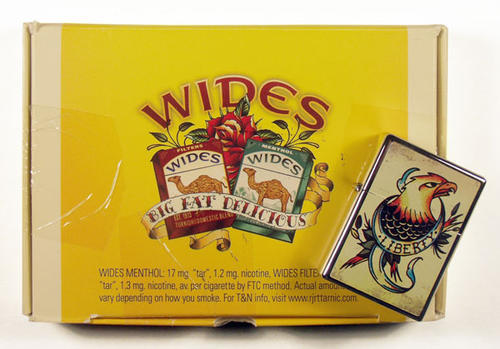 Direct mail received around August 2008 in promotion of Camel Wides. Piece came with a booklet profiling tattoo artist PJ Ferrante, and with a complimentary Zippo lighter displaying a tattoo themed design.