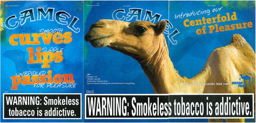 Three page "centerfold" style ad featuring a large image of a camel instead of a woman. The ad jokingly states: "We also appreciate smooth curves, supple lips and the unbridled passion for pleasure." "Introducing our Centerfold of Pleasure". The ad is similar to ads found in 2010 issues of Maxim magazine in promotion of Maxim's "Hometown Hotties" contest.