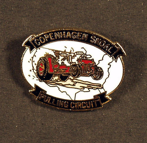 Copenhagen Skoal Pin: Black with gold lettered banner: "Copenhagen Skoal" and "Pulling Circuit"; car in outline of the US.