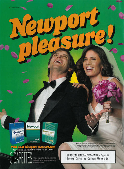 Ad for Newport cigarettes, featuring a wedding themed image of a smiling bride and groom.