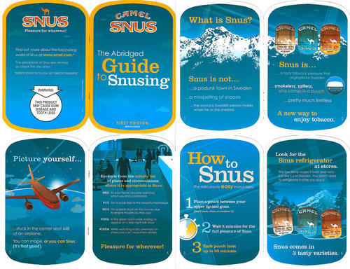Point-of-sale advertisement/booklet in promotion of Camel Snus - "The Abridged Guide to Snusing. First Edition".