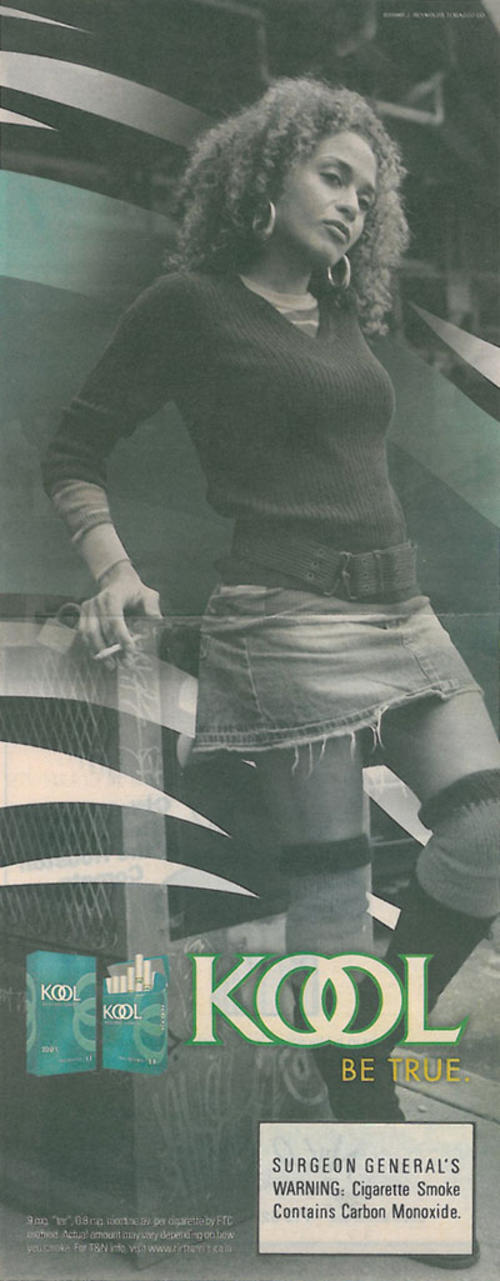 KOOL ad in promotion of the "Be True" campaign. The ad features an image of an African American smoking.